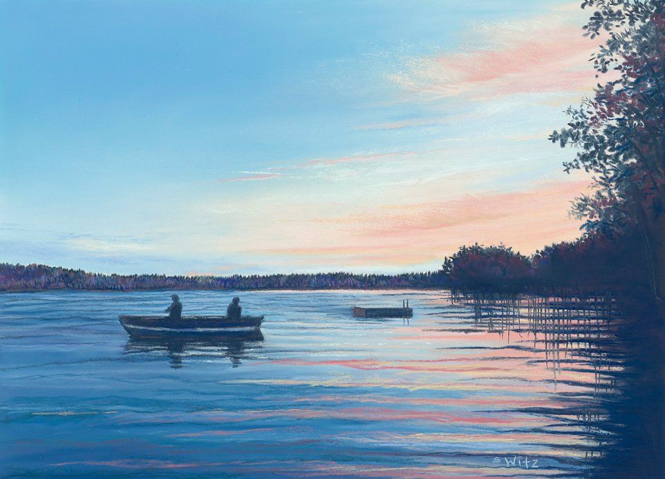 The series of paintings from Pike Lake Chain perspective are scenes from the Iron River area in Northern Wisconsin. The Pike Lake Chain consists of five beautiful spring fed lakes, surrounded by thick forest.